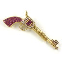 【ルビー ダイヤモンド】 ピンブローチ 鳳凰モチーフ 1ポイント ルビー 0.004ct 26ポイント ダイヤモンド 0.23ct K18YG 【中古】