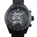 タグ・ホイヤー TAG Heuer 腕時計 カレラ キャリバー ホイヤー02 トゥールビヨン CAR5A8W.FT6071 スケルトン文字盤 パンチングベルト クロノグラフ タキメーター スモールセコンド 裏スケ カーボン ブラック ラバー 黒 自動巻き 【箱・保付き】 【中古】