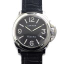 パネライ 腕時計 ルミノール ベース ダイヤモンドコレクション ブラック文字盤 テーパー ラウンド ダイヤインデックス フォールディングバックル PAM00030 ダイヤモンド SS 型押しレザー 手巻き【中古】