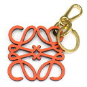 【レビュー1000件記念★対象品3%OFF】 ロエベ LOEWE キーリング キーホルダー アナグラムチャーム C821232X06 ロゴ GP オレンジ カーフスキン 革 【中古】