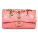 シャネル CHANEL ショルダーバッグ ハンドバッグ 2015年製 バレンタイン限定 シングルフラップ ピンク パイソン ゴールド金具 【中古】