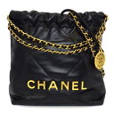 シャネル CHANEL ハンドバッグ ショルダーバッグ シャネル 22 ミニ AS3980 ブラック シャイニー カーフスキン (牛革) ゴールド金具 【中古】
