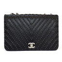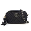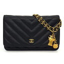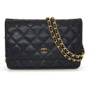 シャネル CHANEL ハンドバッグ ショルダーバッグ シェブロン チェーンウォレット ブラック グレインドカーフ (キャビアスキン) (牛革) ゴールド金具 【中古】
