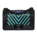 シャネル CHANEL ショルダーバッグ ハンドバッグ ボーイシャネル 20 A67085 2018年製 (24番台) ブラック / グリーン / パープル ラムスキン (羊革) ブラック金具 【中古】