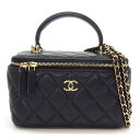 シャネル CHANEL ショルダーバッグ バニティ チェーンショルダー AP2199 ブラック ラムスキン (羊革) ゴールド金具 【中古】