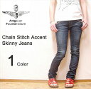 | 【送料無料】大人気のブラックスキニー♪ Antgauge(アントゲージ) 環貫チェーンステッチアクセント ストレッチブラックデニム スキニーパンツ ジーンズ【GC619】