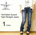 | 【送料無料】クロスの飾りが可愛い♪ Antgauge(アントゲージ) "蟻"ステッチアクセント タイトストレートジーンズ デニム【GC606-36】