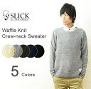 着心地抜群のワッフル編みセーター♪ Slick(スリック) ワッフルニット クルーネックセーター メンズ ニット セーター 無地 丸襟 シンプル キレイめ カジュアル ADEQUATE アディクエート タイト スリム 細身 オフ ホワイト 白 ナチュラル ネイビー オリーブ カーキ 黒 ブラック グレー 【7183301】