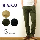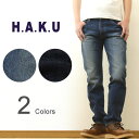 【送料無料】シンプルで飽きのこないスタンダートモデル♪ H.A.K.U(ハク) ナロー テーパード デニム パンツ メンズ チノパン トラウザー シンプル レギュラー ストレート アメカジ カジュアル ワーク ストリート モード キレイめ スニーカー ゴルフ 定番 ワンウォッシュ ブリーチ インディゴ 【HK-0001】