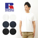 厚手で丈夫なポケTee♪ RUSSELL ATHLETIC (ラッセルアスレチック) ポケット Tシャツ 半袖 ポケT ティーシャツ メンズ レディース 胸ポケット 無地 シンプル ワンポイント 刺繍 ワッペン 厚手 丈夫 安い おしゃれ 白 黒 ブラック ストリート キャンプ アウトドア XL 大きい サイズ 【RC-1002】