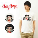 【送料無料】ボリューム感あるサガラ刺繍Tee♪ Betty Boop(ベティブープ) サガラ 刺繍 チェッカー フラッグ Tシャツ 半袖 メンズ レディース アメカジ ストリート ルード系 モード パンク ファッション バイカー バイク ツーリング アメリカ キャラクター タイト 細身 大きいサイズ 黒 ブラック 白 ホワイト 【BE-76】