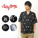 【送料無料】接触冷感で夏でも涼しいコーデが組める♪ Betty Boop(ベティブープ) 総柄 プリント オープン カラー 半袖 シャツ メンズ レディース ベティちゃん 柄シャツ 接触冷感 涼しい ひんやり アメカジ アメリカ 映画 アニメ キャラクター ストリート バイク バイカー ルード モード モノトーン 黒 白 ブラック 【BE-83】