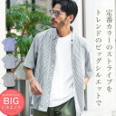 【MAX80%OFFセール開催中】ストライプシャツ 半袖シャツ メンズ 5分袖◆ビッグシルエットボタンダウンストライプ半袖シャツ◆ボタンダウンシャツ 大きめ オーバーサイズ ゆったり きれいめ シャツ カジュアル トップス 縞 20代 30代 40代 ネイビー グレー 夏 夏服