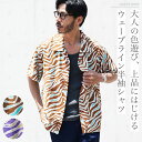 【MAX80%OFFセール開催中】半袖シャツ メンズ 5分袖◆ウェーブライン 半袖 オープンカラーシャツ◆涼しい ドライタッチ ゆったり リゾート リラックス 開襟 シャツ トップス 縞 総柄 メンズファッション 20代 30代 40代 ブラウン パープル 夏 夏服 夏物 春 春服 春物