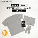洗濯環境が整わず、清潔な衣類や着替えを入手しづらい避難時に役立つ、男女兼用フリーサイズの下着「Tシャツ・ボクサーパンツ・ソックス」3点セットです。足立織物 真空下着3点セット(大人用)SK-UW(F)25セット 男女兼用 ユニセックス フリーサイズ 下着 Tシャツ ボクサーパンツ ソックス 10年保存 真空パック 肌触りが良い ベア天竺 透けにくい グレー 避難所 緊急時 災害時 防災 防災用品 防災グッズ かさばらない