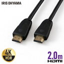 ケーブル HDMI hdmi 高速伝送 イーサネット ARC HDMI入力 HDMI出力 A−19 4K 2K アイリスオーヤマHDMIケーブル 2m ハイスピード hdmi ケーブル 4K 2K HDR フルハイビジョン 金メッキ仕様 2メートル 2m 200cm 高速伝送 イーサネット ARC テレビ ディスプレイ モニター ゲーム プロジェクター アイリスオーヤマ ブラック IHDMI-PSA20B 【メール便】