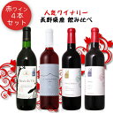 【 長野県産ぶどう100%使用 赤ワインセット 】長野の人気ワイナリー 赤ワイン飲み比べ4本セット 720ml×各1本 / 〔アルプス ブラッククイーン、山辺ワイナリー コンコード辛口、井筒ワインメルロー、マスカットベリーA〕フルボトル