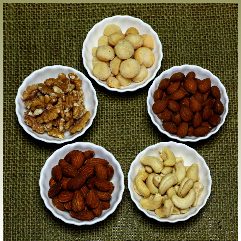| 内容量は、・アーモンド(ノンパレル種)約20g、 ・アーモンド(ビュート種)約20g ・カシューナッツ 約35g ・マカダミアナッツ 約15g ・くるみ(LHP) 約20g 合計110g ・自然の食品であるナッツの性質上、割れやカケがありますことをご了承下さい。また、くるみのLHP(Light Half &Piece)とは、「ハーフサイズとクオーターサイズ」のクルミの事です。