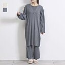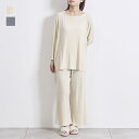 すっきりキレイ見え、やわらかリブニット【KEYUCA公式店】ケユカ ケユカリラックスウェア リブ7分袖セット [レディース 上下セット フレアパンツ 美脚効果 ニット生地 シンプル おしゃれ]