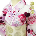 身丈164cm 裄68.5cm ぶしょうあん 洗える着物 ゆかた 盛夏 夏着物 化繊 花火大会【 中古 】 夏物 浴衣 小紋 リサイクル着物 ポリエステル 撫松庵 花模様 薔薇 オフホワイト 赤紫系色 多色 身丈164cm 裄68.5cm L A1040-5 [ ゆかた 洗える コスプレ 木綿 花火 祭り 夕涼み 送料無料 きもの北條]