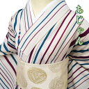 身丈165cm 裄65cm 洗える着物 ゆかた 盛夏 夏着物 化繊 花火大会【 中古 】 夏物 浴衣 小紋 リサイクル着物 ポリエステル あじゃん 縦縞模様 生成色 葡萄色 青緑色 身丈165cm 裄65cm L トール A1040-6 [ ゆかた 洗える コスプレ 木綿 花火 祭り 夕涼み 送料無料 きもの北條]
