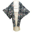 はおり ちりよけ 塵除け 着物 リサイクル 上着 女性用着物 レディース【 中古 】 羽織 コート リサイクル着物 正絹 花鳥の図 羽織紐付き 深緑色 身丈98cm 裄69cm A1317-2 [ 和服 サイズ 和装コート 着物用コート kimono 防寒着 送料無料 きもの北條]