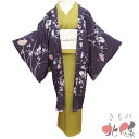着物 リサイクル 上着 女性用着物 レディース アウトレット【 中古 】 羽織 コート リサイクル着物 正絹 縮緬地 地紙に植物文様 滅紫色 多色 身丈103cm 裄69cm A1313-2 [和服 サイズ 和装コート きもの kimono 防寒着 冬 送料無料 きもの北條]