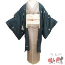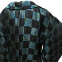 身丈100cm 裄70cm 羽織 和装コート 着物 リサイクル リサイクル 中古 上着 女性用着物 レディース【 中古 】 羽織 コート リサイクル着物 正絹 お召し 御召 黒色 紺色 青緑色 身丈100cm 裄70cm A1076-4 [ 和服 サイズ 和装コート 羽織 きもの kimono 防寒着 冬 送料無料 きもの北條]