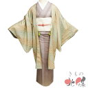 はおり ちりよけ 塵除け 着物 リサイクル 上着 女性用着物 レディース【 中古 】 羽織 コート リサイクル着物 正絹 暈し 地模様 羽織紐付き 小麦色 裏葉柳色 身丈101cm 裄68cm A1317-4 [ 和服 サイズ 和装コート 着物用コート kimono 防寒着 送料無料 きもの北條]
