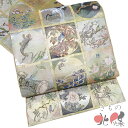 【 未使用 】 アンティーク 夏物 夏帯 丸帯 正絹 カジュアル 仕立て上がり 全通 鳥模様 亀甲 市松 鱗 麻の葉 銀糸 A1254-19 [和服 送料無料 きもの北條]