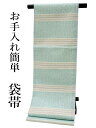 ビギナーの方にもおすすめ!袋帯 洗える 仕立て上がり カジュアル袋帯 水色 青緑 グレー ダマスク柄 縞 単品 新品 カジュアル ポリエステル 洗える 仕立て上がり プレタ レディース 女性 和服 和装 着物 送料無料