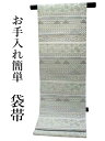 ビギナーの方にもおすすめ!袋帯 洗える 仕立て上がり カジュアル袋帯 ライトグレー 薄緑 うろこ 唐草 単品 新品 カジュアル ポリエステル 洗える 仕立て上がり プレタ レディース 女性 和服 和装 着物 送料無料