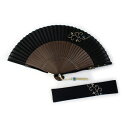 お誕生日やさりげないお礼などのギフトにも最適。 女性用夏物オシャレ扇子扇子 扇子袋 2点セット レディース 黒 唐草模様 箱入り エコ ギフト プレゼント 春 夏 母の日 婦人 女性 女 綿 シルク 京扇子 せんす あす楽