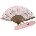 お誕生日やさりげないお礼などのギフトにも最適。 女性用夏物オシャレ扇子扇子 扇子袋 2点セット レディース 薄ピンク 鳥 枝花 箱入り エコ ギフト プレゼント 春 夏 母の日 婦人 女性 女 京扇子 せんす y2 送料無料