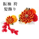 成人式や卒業式に。 より華やかにしてくれるヘアアクセサリー成人式 髪飾り 2点セット オレンジ 菊 つまみ細工 花 卒業式 前撮り 袴 はかま 振袖 結婚式 和装 和服 着物 かんざし コサージュ ヘアアクセサリー
