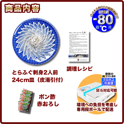 とらふぐ刺身 約60g、ふぐ皮湯引き 約40g、ポン酢、薬味 |