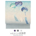 すぐに使える麻の夏帯です。小紋や紬などのカジュアルな装いに。一味違う、個性的な帯で着物ライフを。夏帯 京袋帯 麻 お仕立て上がり <水色 / 風鈴 > 日本製 < 召しませ花 > 【 帯 おび 名古屋帯 なごや帯 召しませ華 盛夏 青 京袋 小紋 紬 単衣 夏着物 浴衣 和装 カジュアル シロクマ 白く