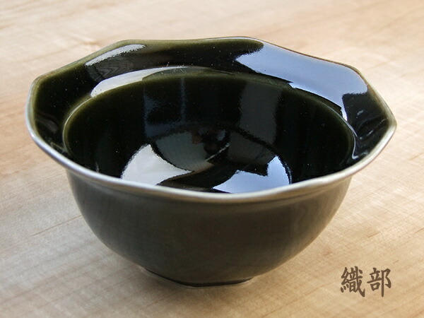 織 部:黒っぽい織部色で艶のある小鉢です。
