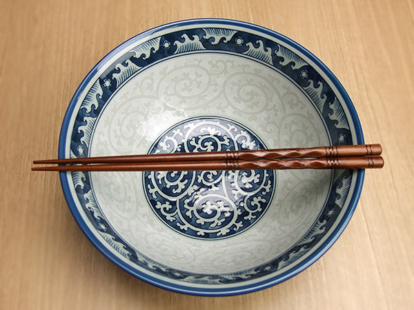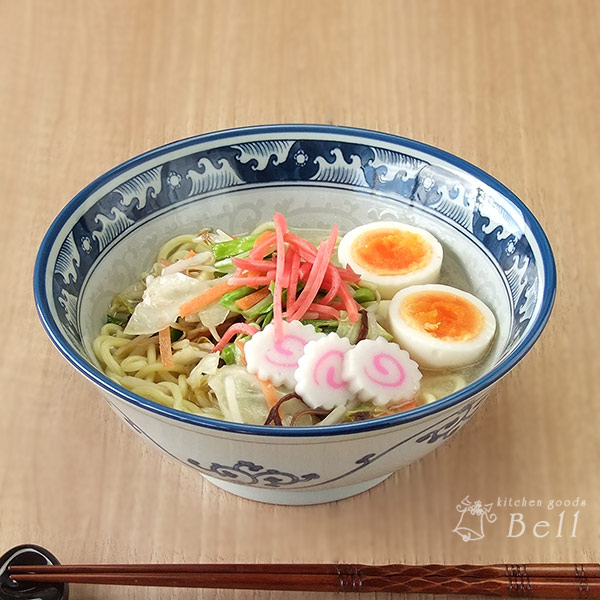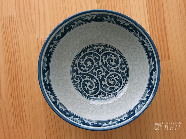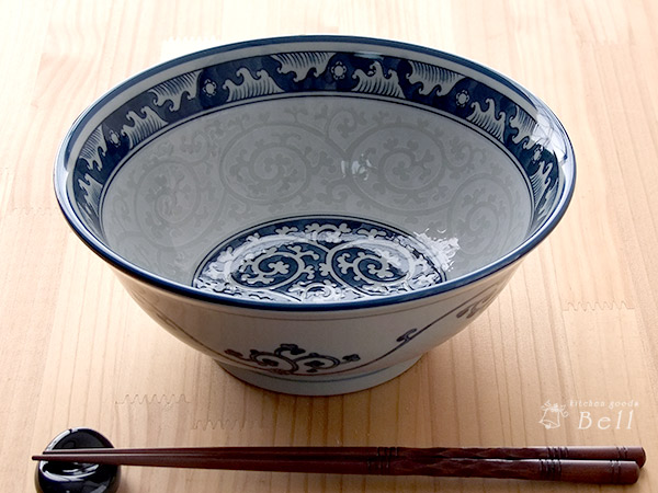 そば丼/麺丼/盛り鉢/盛鉢/大鉢/大丼/うどん丼/冷麺碗/天ころ/ころうどん/染付/藍の和食器/ゴス/上品/お洒落 波唐草 麺丼 21cm ラーメン鉢 丼ぶり どんぶり 日本製 業務用食器