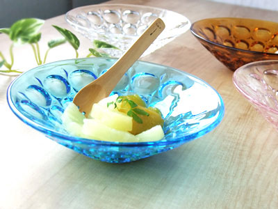 クラフト/鉢/手作り/ガラス鉢/中鉢/ガラス製ボウル/涼感食器 ガラス デザート皿 スカイ ガラス製器 アデリア/日本製/ボウル/かき氷皿/ハンドメイドガラス/庄内クラフト/サラダボウル/おしゃれ/業務用食器
