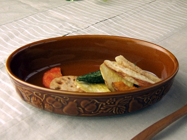 【内容】あめ色 レリーフ グラタン皿×1個