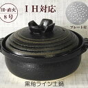 IH対応 8号土鍋 高出力3kw対応 直火も使える送料無料 あす楽 IH対応 黒釉ライン土鍋8号 2〜3人用 日本製 萬古焼