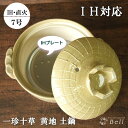 IH対応 9号土鍋 出力3kw対応あす楽 IH 直火兼用 一珍十草黄地土鍋 9号 4〜5人用 日本製 萬古焼*