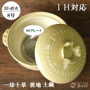 | IH対応 8号土鍋 高出力3kw対応あす楽 IH 直火兼用 一珍十草黄地 8号 土鍋 2〜3人用 日本製 萬古焼*