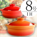 IH対応 8号土鍋 選べるお洒落な2色 楽しく美味しく 業務用食器送料無料 IHと直火兼用 耐熱ポトフ土鍋8号 2〜3人用 日本製 耐熱 オレンジ レッド あす楽