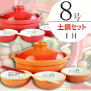 送料無料 直火も使える 8号 土鍋 セットでおトク!!! オレンジ レッド の明るいカラーの土鍋IH対応 3人用 土鍋セット 耐熱宴ベイク土鍋 8号1個 取鉢3個 さいばし1膳 IH用プレート 日本製 業務用食器