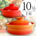送料無料 IH対応 直火も使える 10号土鍋 オレンジ レッド の 明るいカラーの土鍋 業務用食器 IH対応 10号 土鍋 耐熱宴ベイク土鍋 日本製 送料無料 5人から6人用 耐熱食器 あす楽