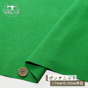 【ニット生地 無地/グリーン】コットン ポンチニット 綿100% 厚み1ミリ強 幅174cm 中肉 ややしっかりめ 横方向に伸びるテンション中 ポンチ【50cm単位 メール便1ヶまで】(x-1440)