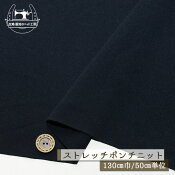 【ニット生地 無地/ネイビー】ストレッチ ポンチニット サラサラ ドライな手触り 厚み1ミリ 幅130cm 縦横に伸びるテンションやや高 ポンチ ストレッチポンチ【50cm単位 メール便1ヶまで】(x-1441)