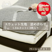 【詰め合わせ】【スウェット生地 セット】送料無料 3枚入 裏毛ニット 裏起毛ニット 綿 コットン トレーナー パーカー 部屋着 秋 冬 カットクロス 福袋 はぎれ ニット生地【 1.3mカット×3枚入り】【メール便不可】(set_sweat)